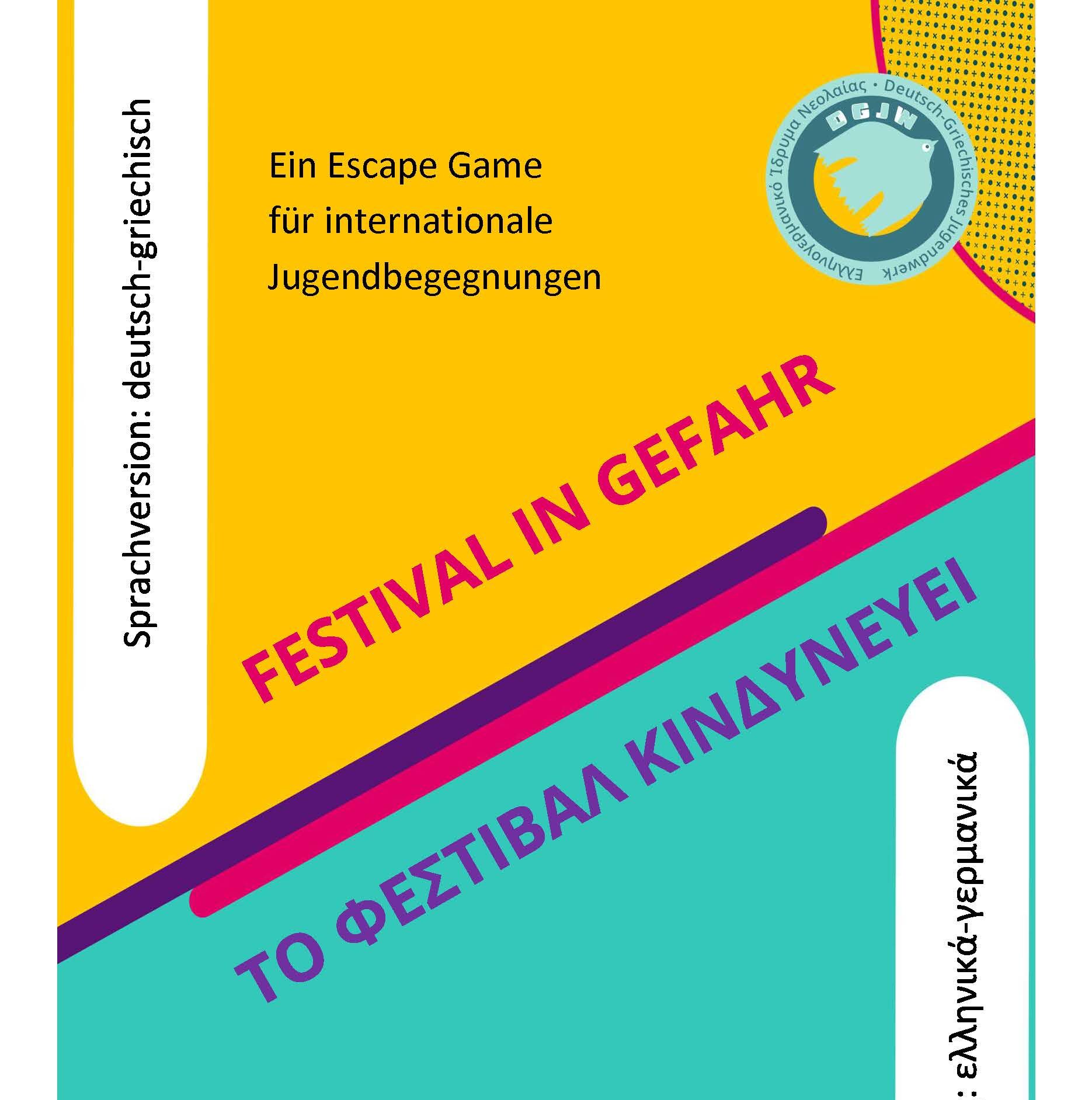 Με μεγάλη χαρά σας παρουσιάζουμε ένα νέο εργαλείο της γλωσσικής εμψύχωσης για ελληνογερμανικές ανταλλαγές! Το παιχνίδι απόδρασης «Το φεστιβάλ κινδυνεύει» έχει σχεδιαστεί ειδικά για διεθνείς συναντήσεις νέων και είναι πλέον διαθέσιμο και για τον γλωσσικό συνδυασμό ελληνικά-γερμανικά! Οι νέοι και νέες λύνουν γρίφους και προβλήματα από κοινού, κάτι που ενισχύει το ομαδικό πνεύμα και δείχνει πόσο σημαντικές είναι οι γλωσσικές δεξιότητες και η αμοιβαία υποστήριξη για την επίτευξη του κοινού στόχου. Το παιχνίδι είναι εύκολο στην προετοιμασία και μπορεί να διεξαχθεί οπουδήποτε.