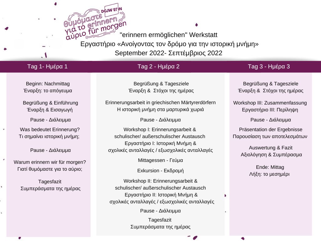 Unsere erinnern ermöglichen Werkstatt bietet einen Einstieg und Einblick in die Welt der deutsch-griechischen Erinnerungsarbeit.